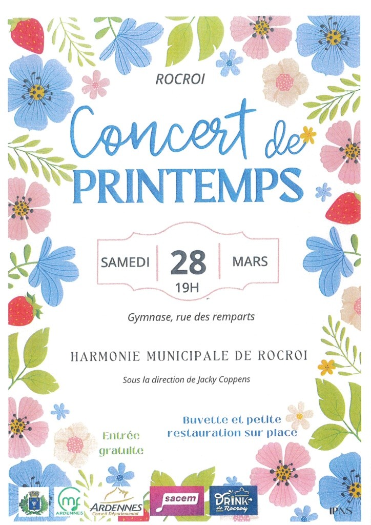 « Tous les Évènements Cet évènement est passé Concert de Printemps 28 mars 2026 « Village des Métiers Rassemblement de camping-cars » + Google Agenda+ Ajouter à iCalendar Détails Date: 28 mars 2026 Catégorie d’évènement: Agenda Organisateur Harmonie Municipale de Rocroi Téléphone : 03.24.35.23.23 E-mail : bruno.boquet@wanadoo.fr Lieu gymnase