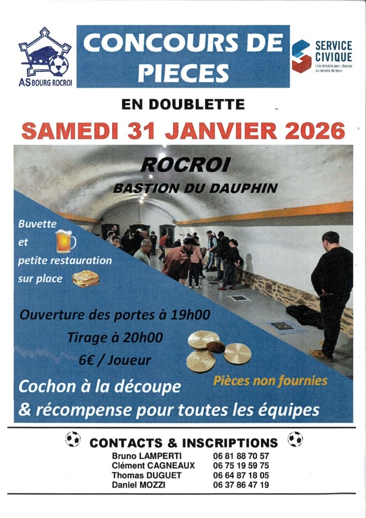 « Tous les Évènements Concours de pièces 31 janvier 2026 « Don de Sang Stage de musique » + Google Agenda+ Ajouter à iCalendar Détails Date: 31 janvier 2026 Catégorie d’évènement: Agenda Organisateur Club A.S.B.R Lieu Bastion du Dauphin